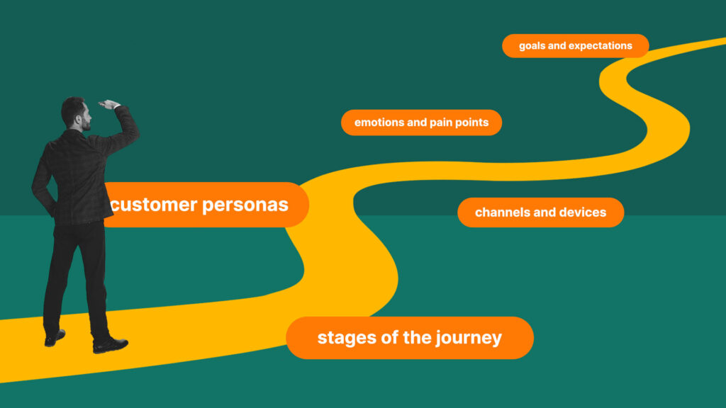Customer journey mapping begins with extensive research. You need both qualitative and quantitative data to understand what your customers go through at each stage of their journey. From there, you’ll break the journey into stages and define what’s happening at each point.