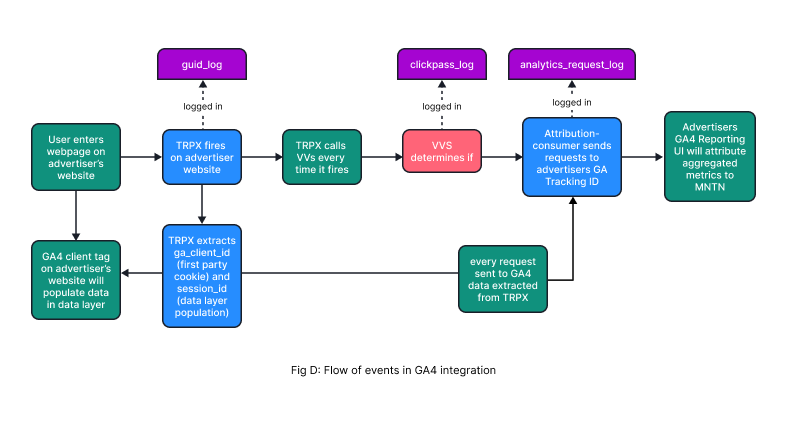 Marketers rely on Google Analytics 4 (GA4) and other Multi-Touch Attribution platforms for a unified view of digital performance. To support this, MNTN mirrors its visit data into advertisers’ GA4 properties using the Measurement Protocol API. However, only non‑competing, last‑touch Verified Visits are forwarded.